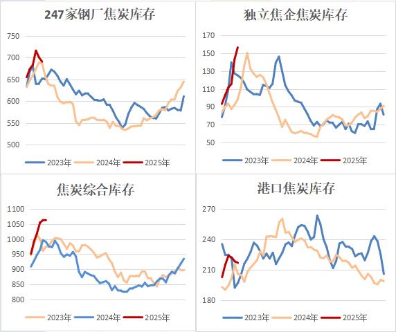 焦钢企业消耗库存为主,下游炼焦煤库存续降