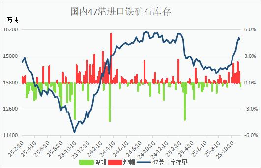 国内47港铁矿石库存止增转降,在港船舶数量增至16个月高位