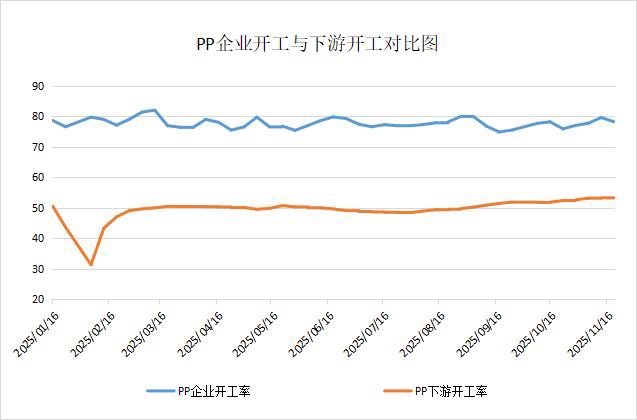 截至11月21日当周,PP企业检修停车增多,下游开工微涨0.29%