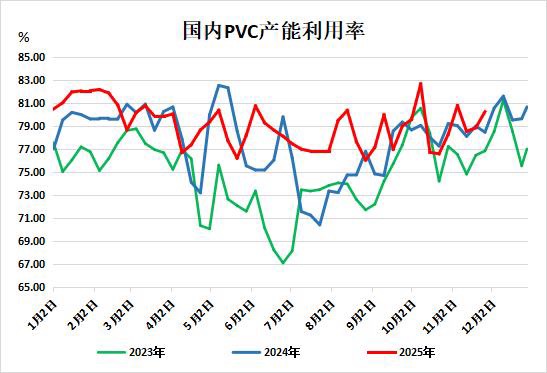 截至11月28日当周,PVC装置检修损失减少,周度行业开工周增1.38%