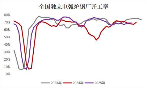 据Mysteel本周电弧炉钢厂利润有所恢复,谷电逐渐开始盈利。部分钢厂考虑到利润回升,主动选择复产或增加生产时间,提高生产饱和度。全国独立电弧炉钢厂开工率持平于69.13%,产能利用率微幅上升1.16个百分点至52.73%,同比降幅收窄至0.78%。