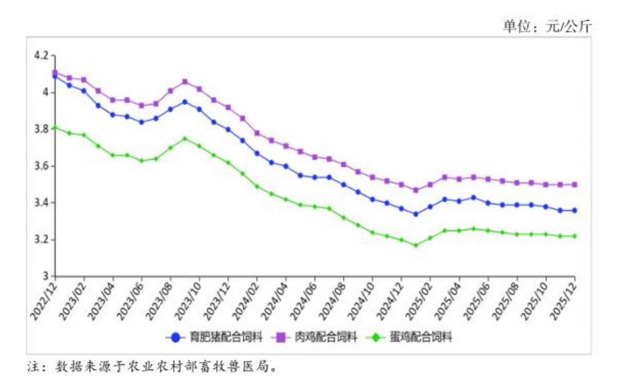 据农业农村部,预计短期内饲料价格稳中趋涨。从需求看,目前国内生猪、肉禽等养殖规模仍处于较高水平,对饲料需求形成支撑。春节临近,养殖场户为应对假期期间饲料企业停机放假、物流运力较少等影响,将加大饲料采购、带动需求增长。从供给看,目前国内玉米、豆粕供给总体充足,油厂大豆库存处于较高水平,可以有效保障饲料企业生产,饲料加工需求增长将对原料价格形成一定支撑。综合来看,短期内饲料需求将增长,原料供给较为充足,在需求带动下饲料价格将稳中趋涨。