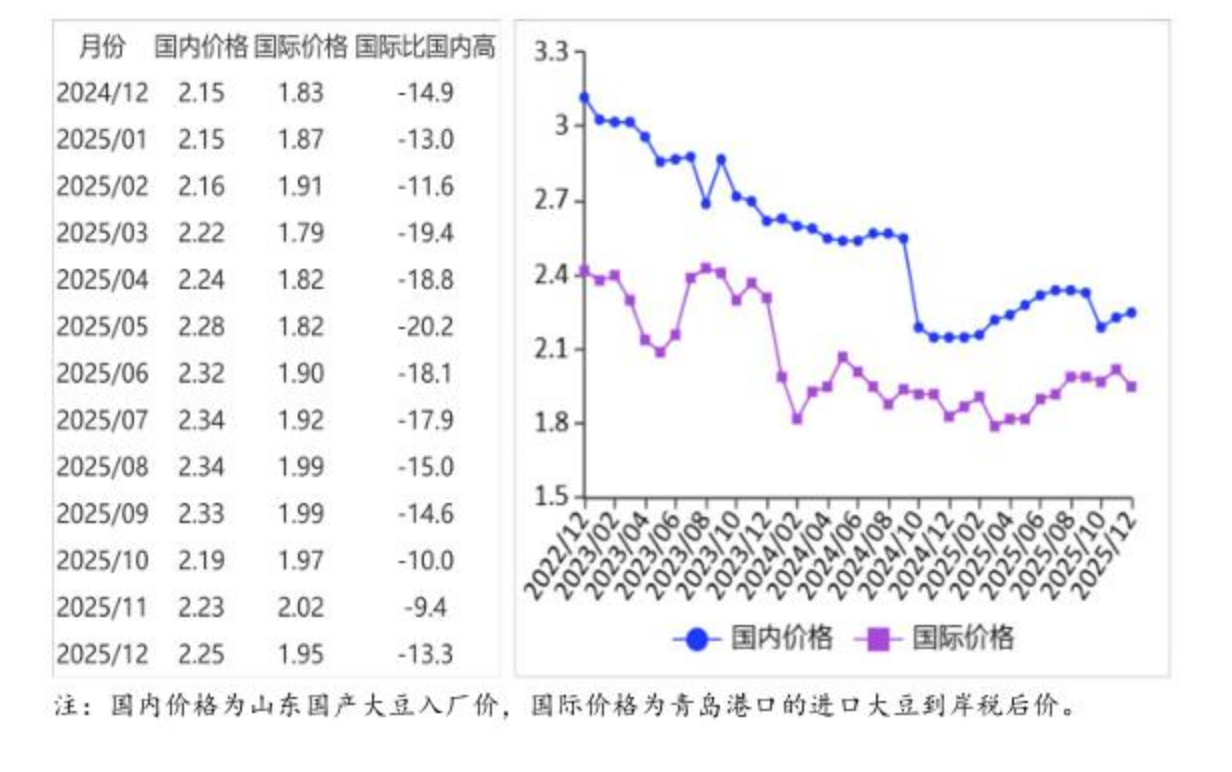 国内大豆价格上涨,国际大豆价格下跌