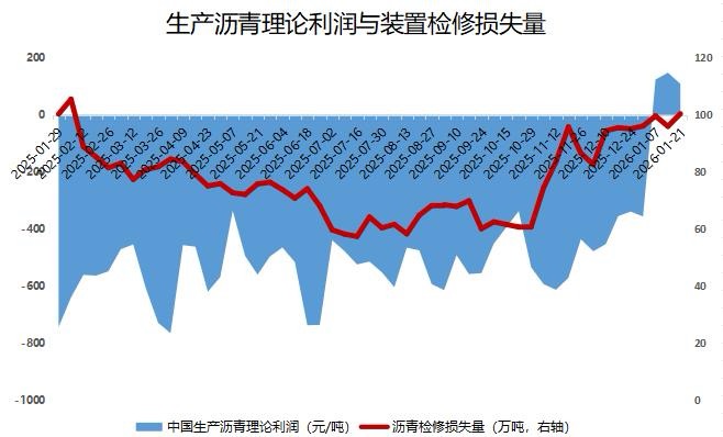 截至1月20日当周,沥青生产继续保持盈利,装置检修量增加