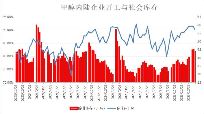 截至1月22日当周,甲醇开工率回落,内陆企业库存去化