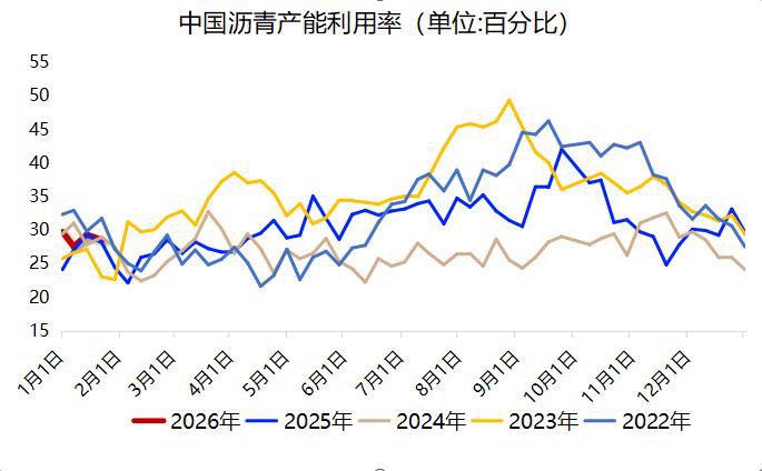 截至1月21日当周,个别主营炼厂相继转产渣油,沥青产能利用率环比下降