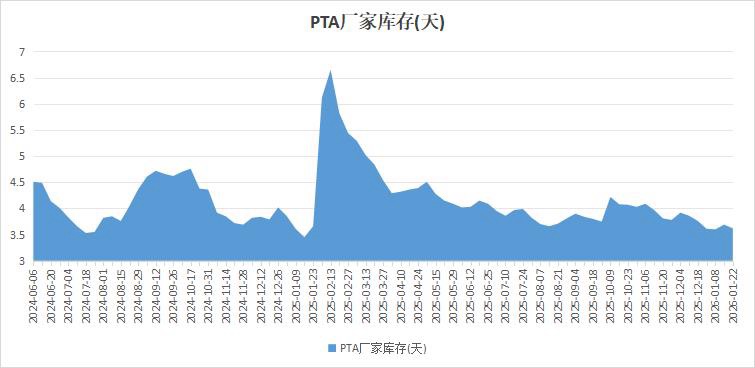 截至1月22日当周,供需两端缩量,PTA库存小幅去化