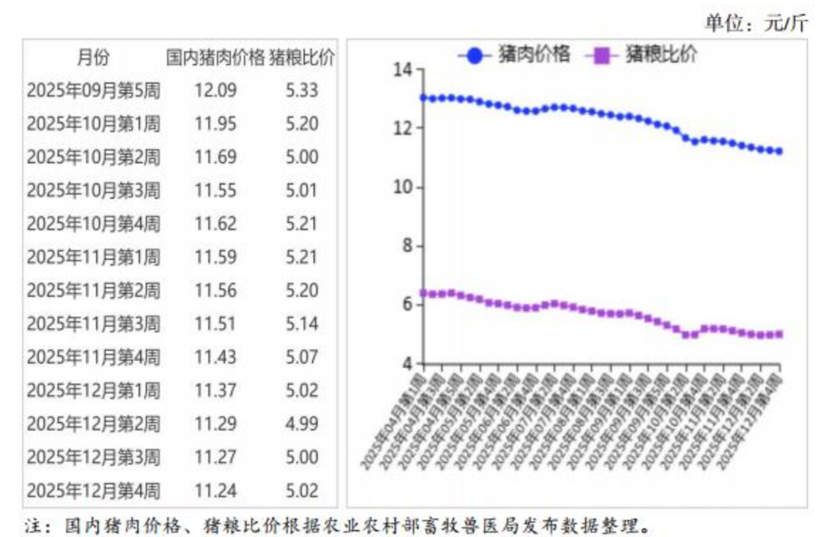 据农业农村部,预计春节前猪肉价格温和反弹。从生产端看,前期压栏肥猪在春节前陆续上市,生猪供给处于全年最高峰,节前市场猪肉供应总体充裕。从消费端看,腌腊、灌肠等进入高峰期,叠加春节备货陆续启动,终端消费需求集中释放,有望带动生猪和猪肉价格温和反弹。