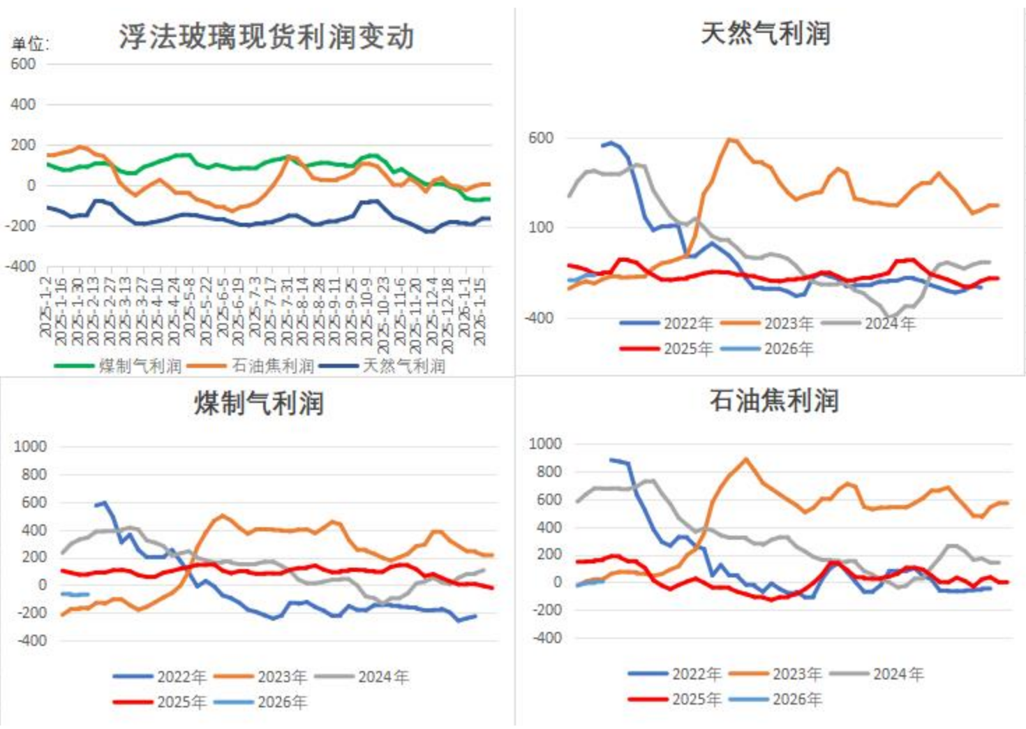 据隆众资讯,本周玻璃现货和原料纯碱价格持稳,燃料价格变动不一,各产线盈利情况小幅波动。1月16日-1月22日,据隆众资讯生产成本计算模型,其中以天然气为燃料的浮法玻璃周均利润-158.69元/吨,环比增加5.71元/吨;以煤制气为燃料的浮法玻璃周均利润-65.11元/吨,环比增加3.90元/吨;以石油焦为燃料的浮法玻璃周均利润-1.78元/吨,环比下降5.71元/吨。