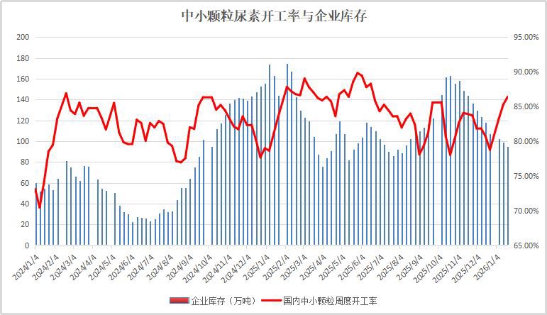 截至1月22日当周,尿素开工率小幅提升,企业库存下滑