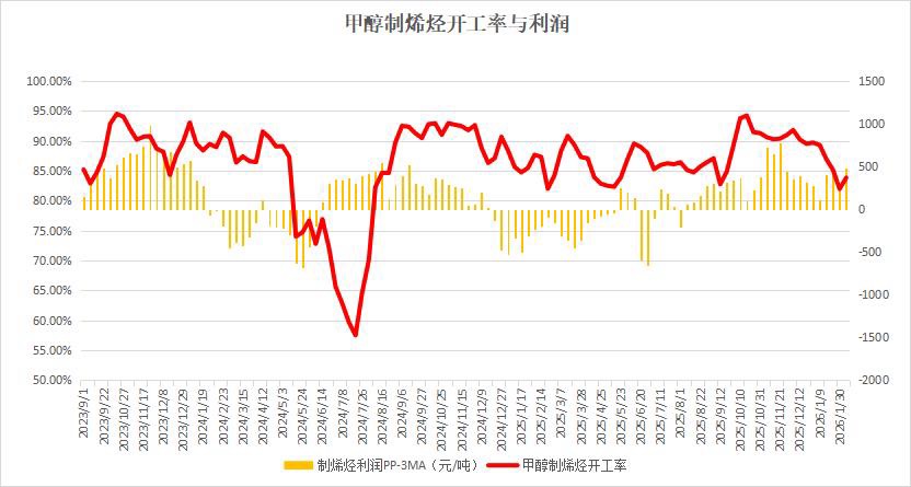 截至2月6日当周,甲醇制烯烃利润走高,开工率有所提升