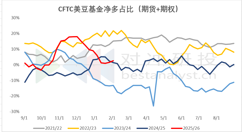 CFTC美豆基金:截至2月3日期货+期权非商业基金净多持仓增11511至28832张