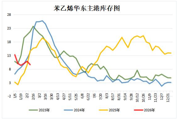 截至2月9日,苯乙烯港口库存下滑,本周或小幅波动