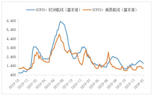 2月9日,上海出口集装箱结算运价指数(欧线)环比下跌7.5%