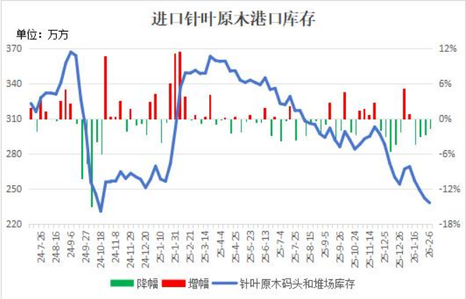 中国港口针叶原木库存连降4周续创阶段新低