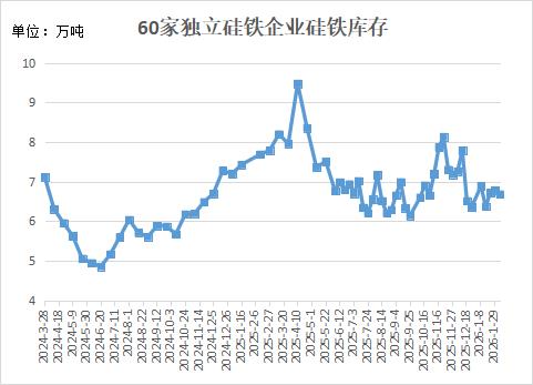 据Mysteel,硅铁主流钢招定调,带动中小钢厂陆续进行招标采购,拉动厂内库存小幅去化。本周Mysteel统计全国60家独立硅铁企业样本库存量为66860吨,环比减少1.53%、减少1040吨。
