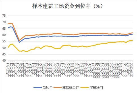 本周建筑资金到位率继续增长,非房建项目资金到位率明显上行