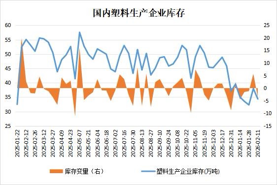 截至2月11日,生产企业主动去库,聚乙烯企业库存下滑