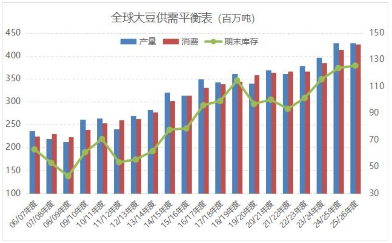 全球2025/26年度豆油期末库存预计为612.9万吨