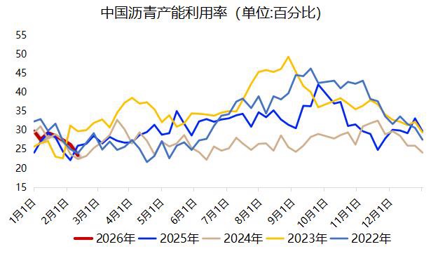 截至2月11日当周,个别主营炼厂间歇降产,沥青开工率连降四周