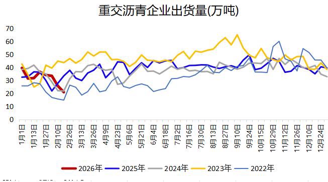 截至2月24日当周,下游需求疲软导致炼厂出货受阻,沥青出货量持续下降