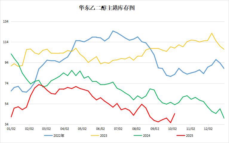 截至10月9日,假期港口提货偏弱,乙二醇港库周增8.8万吨