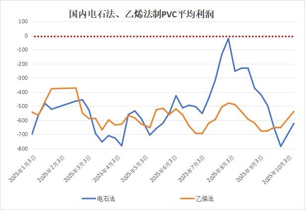 截止10月10日,上游成本下滑,PVC行业利润亏损环比好转