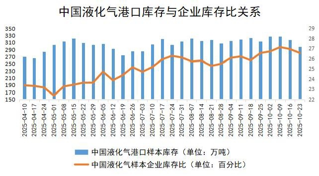 截至10月23日当周,液化气港口库存持续减少,国内库容率同步下降