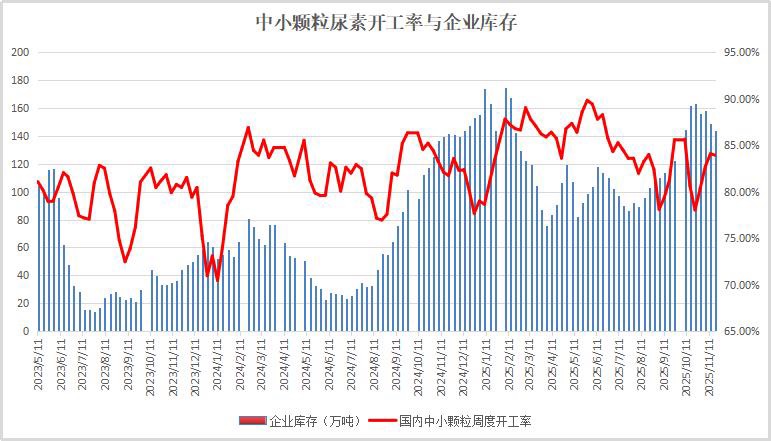 截至11月20日当周,尿素开工率降低,企业库存连续下滑