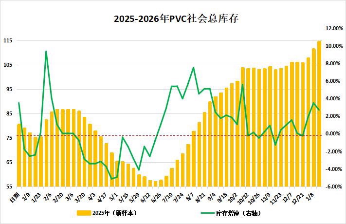 截至1月16日当周,市场备货积极性有限, PVC社会库存周增2.7%