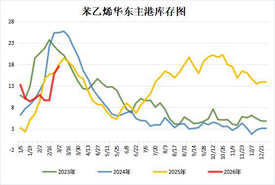 截至3月2日,提货预期有提升,苯乙烯港口库存未来或去化