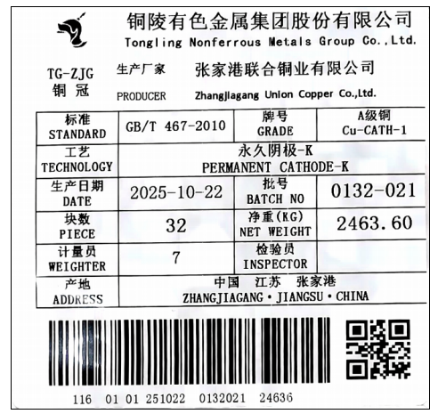 一、同意张家港联合铜业有限公司生产的“TG-ZJG 铜冠”牌A级铜在我所注册,注册产能10万吨,执行标准价。